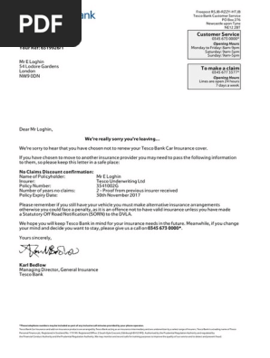 I wouldn't recommend using tesco bank for car insurance, or anything else for that matter. Tesco bank car insurance has a defaqto 5 star rating which means it has a comprehensive level of features and benefits. Your price at renewal may increase or decrease and will depend on a number of things, one of them being driving behaviour. Tesco bank upgraded courtesy car cover is underwritten by tesco underwriting limited. This is done to make things easier for you and so that you don't if your car insurance policy with tesco ends with a letter, then you may need to contact tesco underwriting.